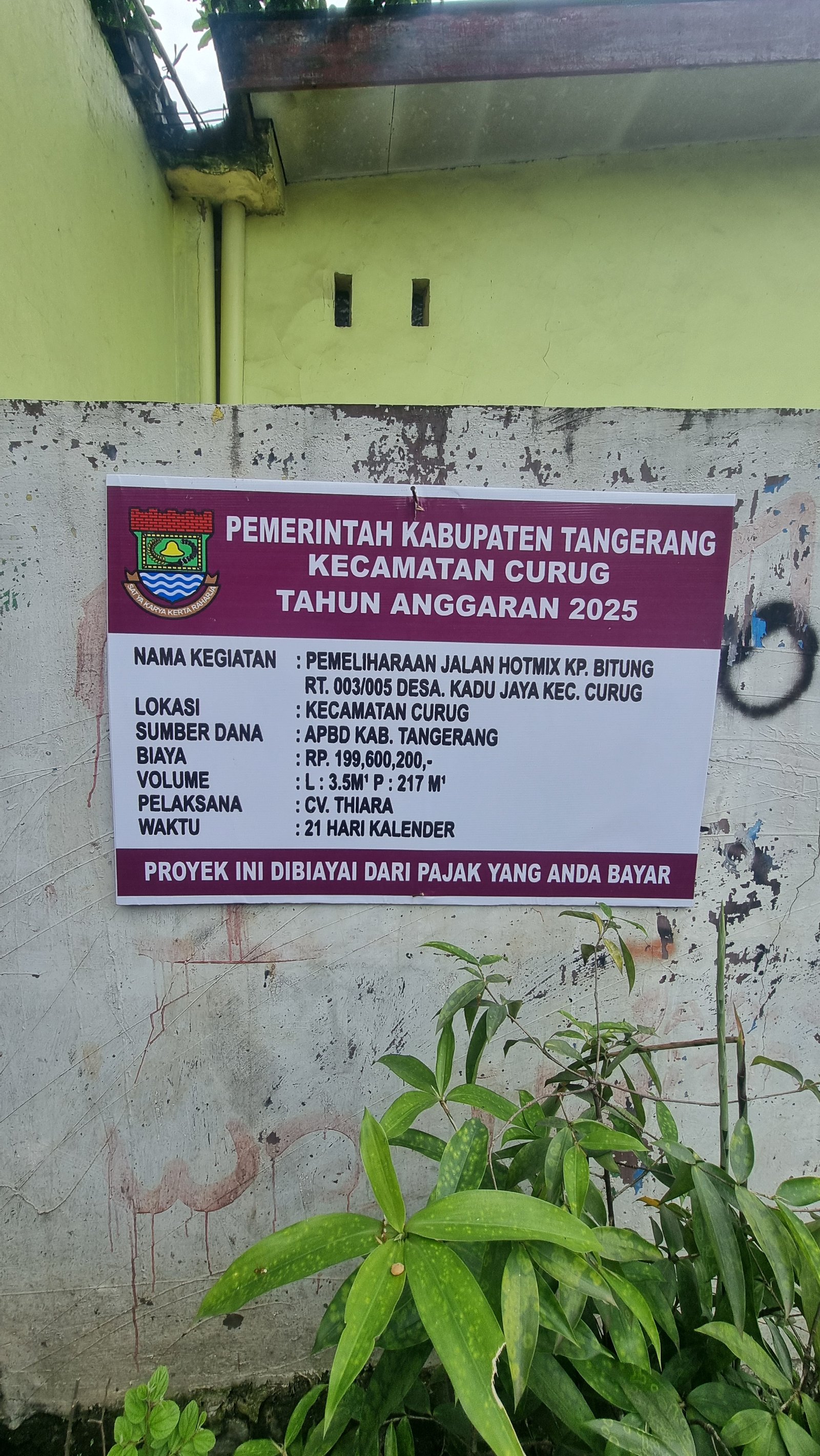 | Nama sapras | : | Jalan hotmix kp.bitung rt.003/005 kadu jaya |